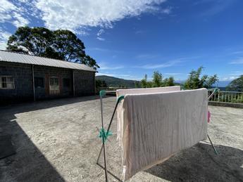 此地山區迎東北風的地勢,在梅雨季節與冬天幾乎24小時濕答答,一年大概有250天以上是雨天;因此,浴室廚房角落時常有霉斑,濕氣太重時,密集的馬陸大軍便大舉來襲,有時在地上、有時在天花板,有時密集佈滿三合院牆邊屋沿。非常嚇人。